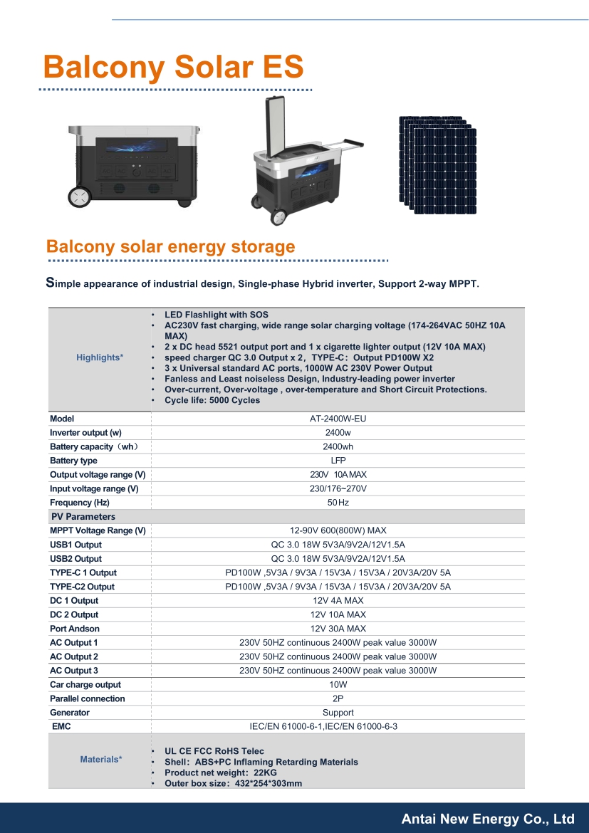 AT-2400W simple appearance of industrial design, Single-phase Hybrid inverter, Support 2-way MPPT.