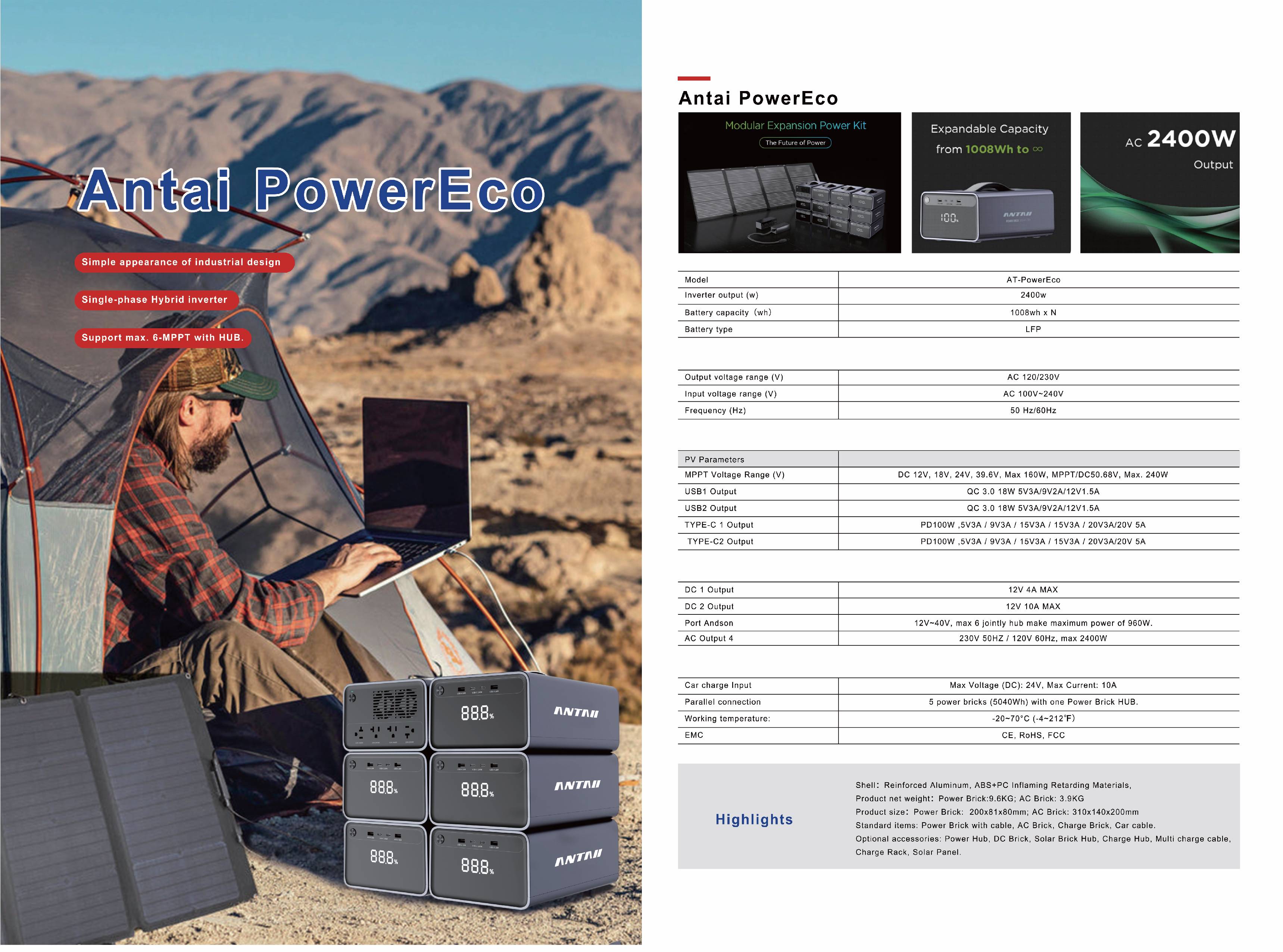 PowerEco is the world's first modular power kit that offers ultimate flexible combinations and limitless expansions. Like playing with Lego, you can easily build your own PowerEco power station with customized battery capacity and output wattage all the way up to infinity to meet different energy demands using the PowerEco building blocks including: Power Brick, AC Brick, DC Brick, Charge Brick, Solar Hub and Solar Panel.