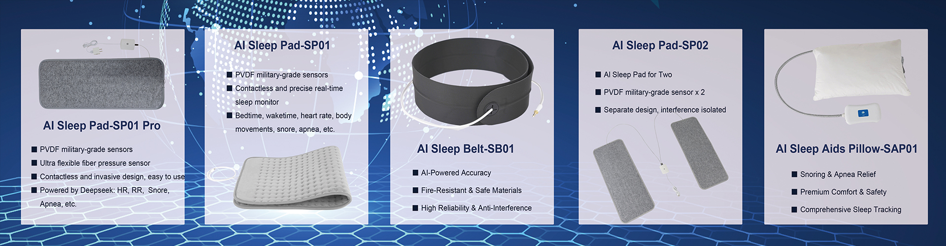 ●AI algorithms to get accurate sleeping data: heart rate, respiratory rate, body movement, snoring, apnea...