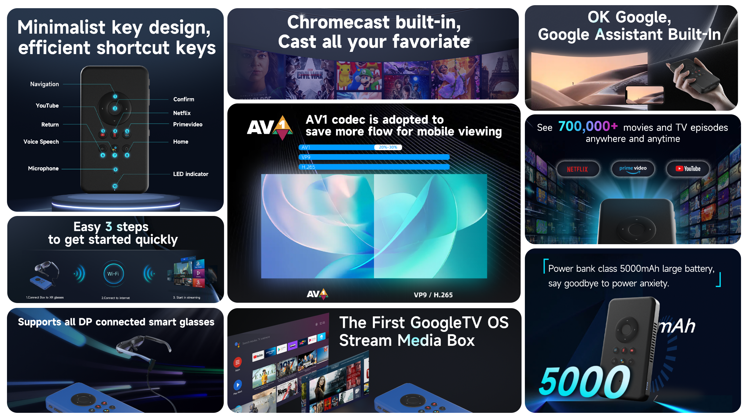 ODM/OEM Service Multifunction Stream Box AR Smart Glasses Stream Box For Google TV OS